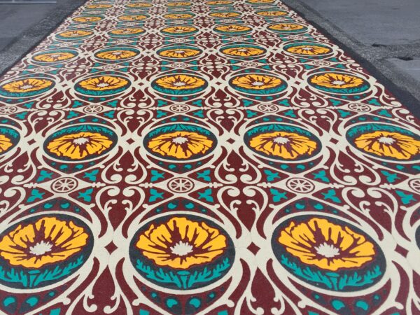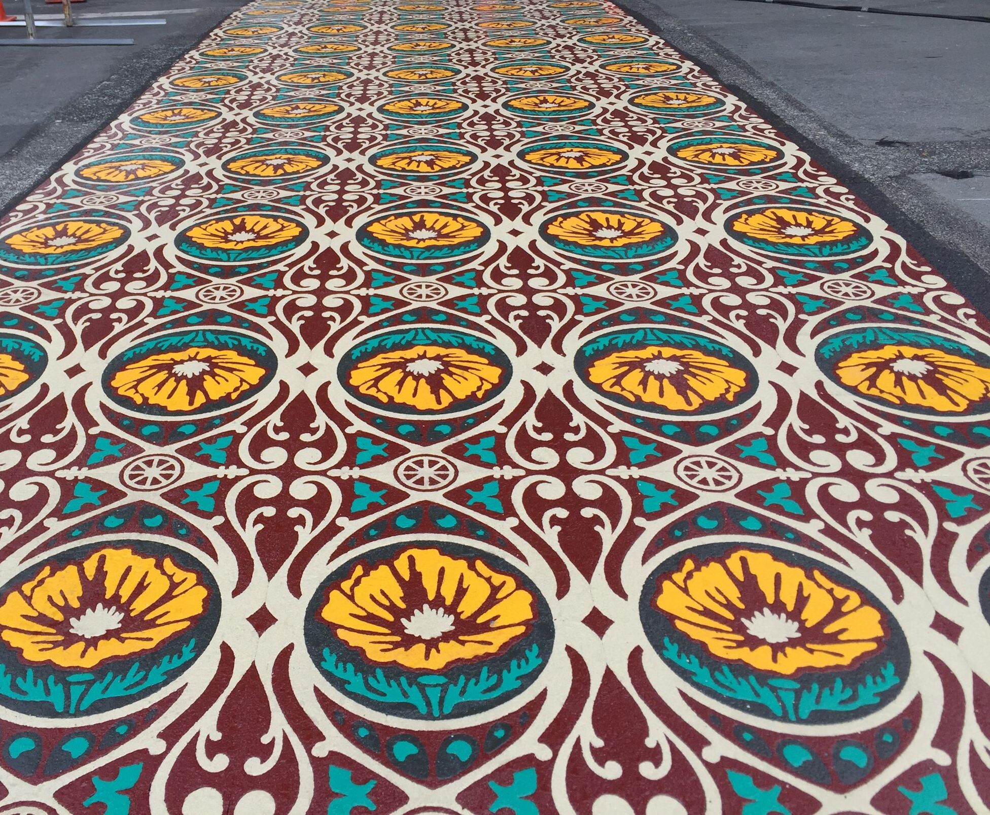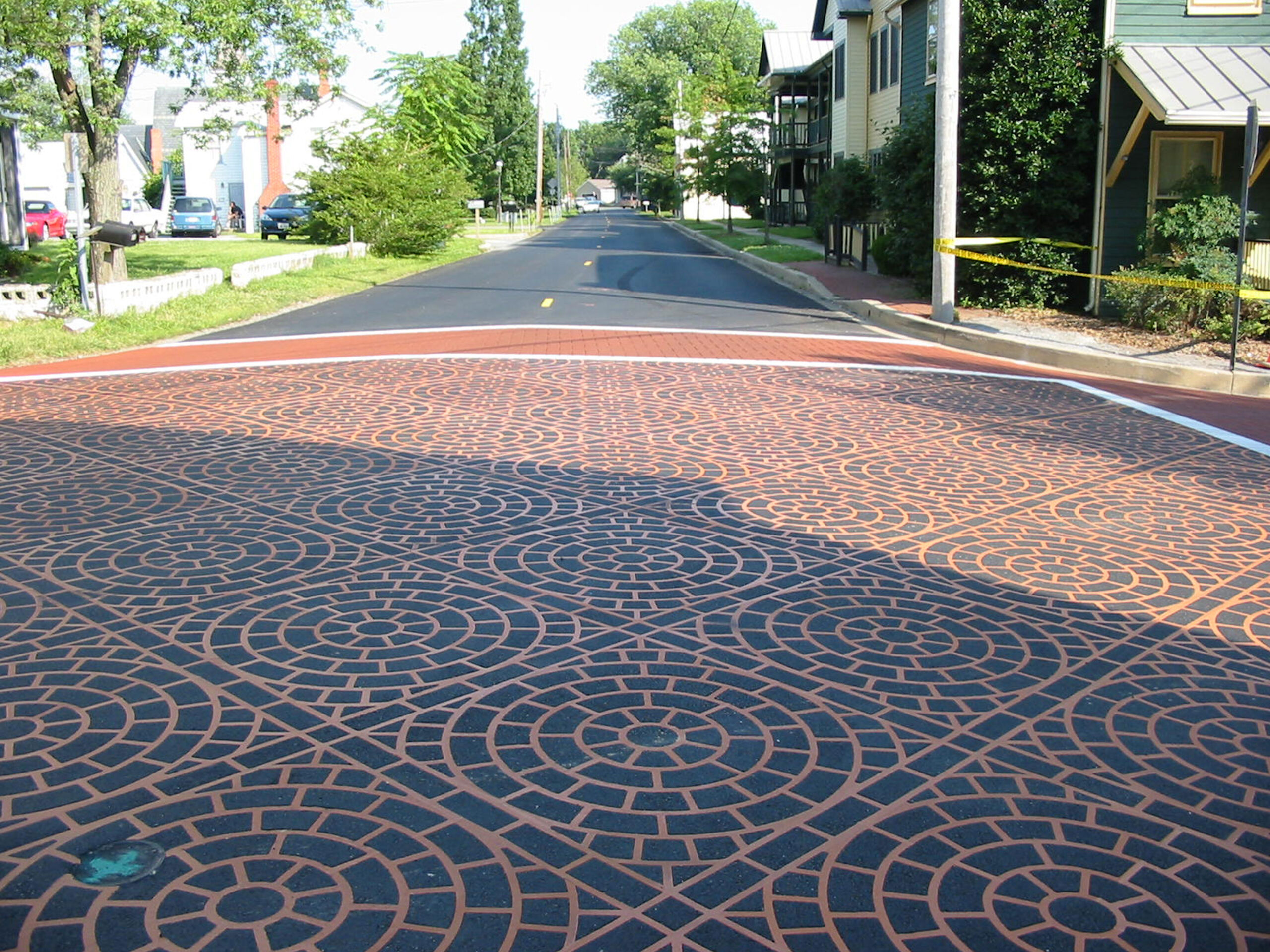 by Stamping Asphalt, Coloring Asphalt, and Applying Surface Systems