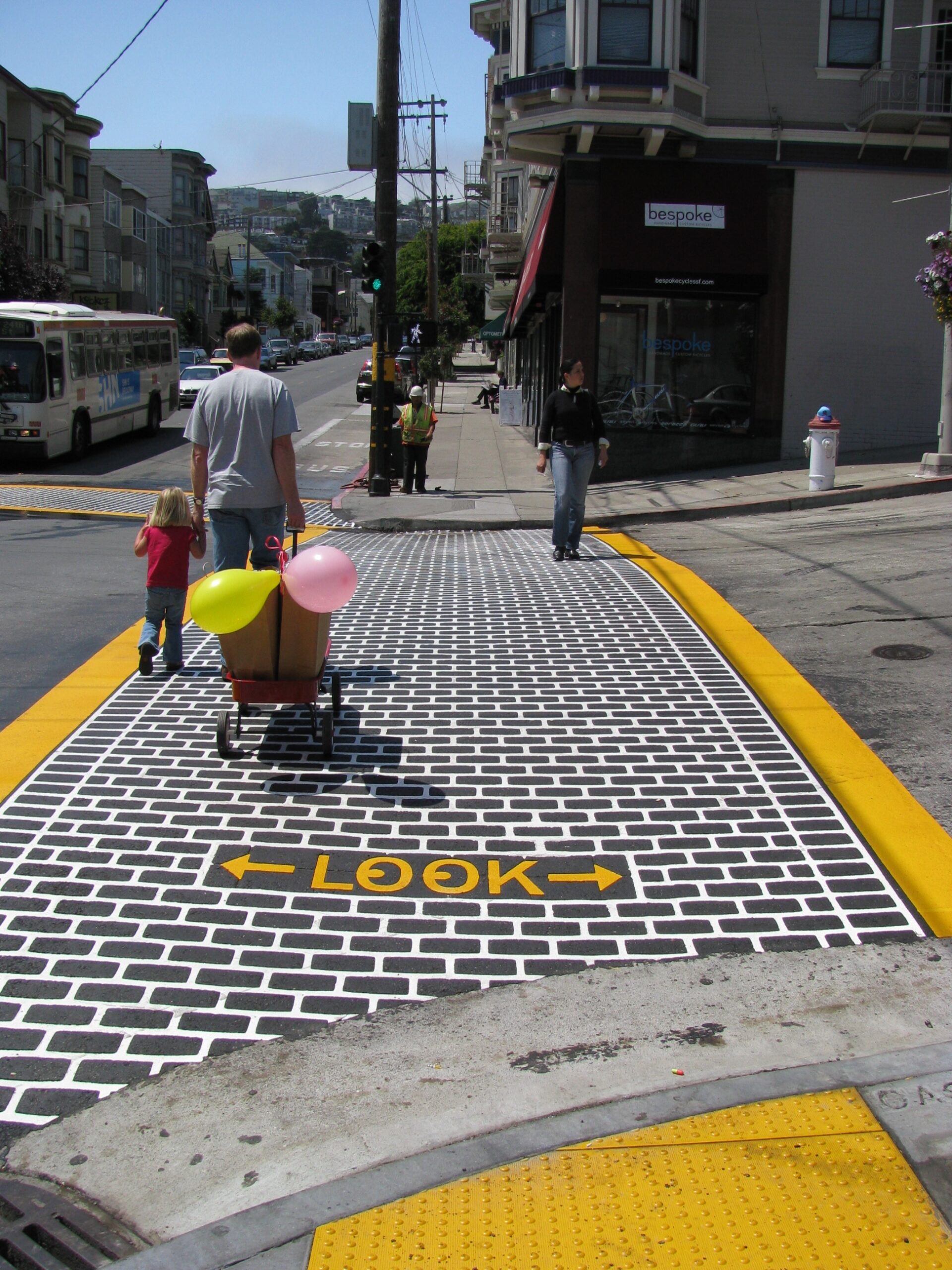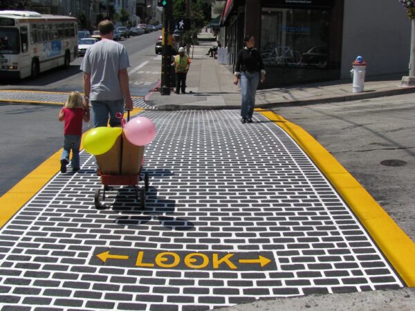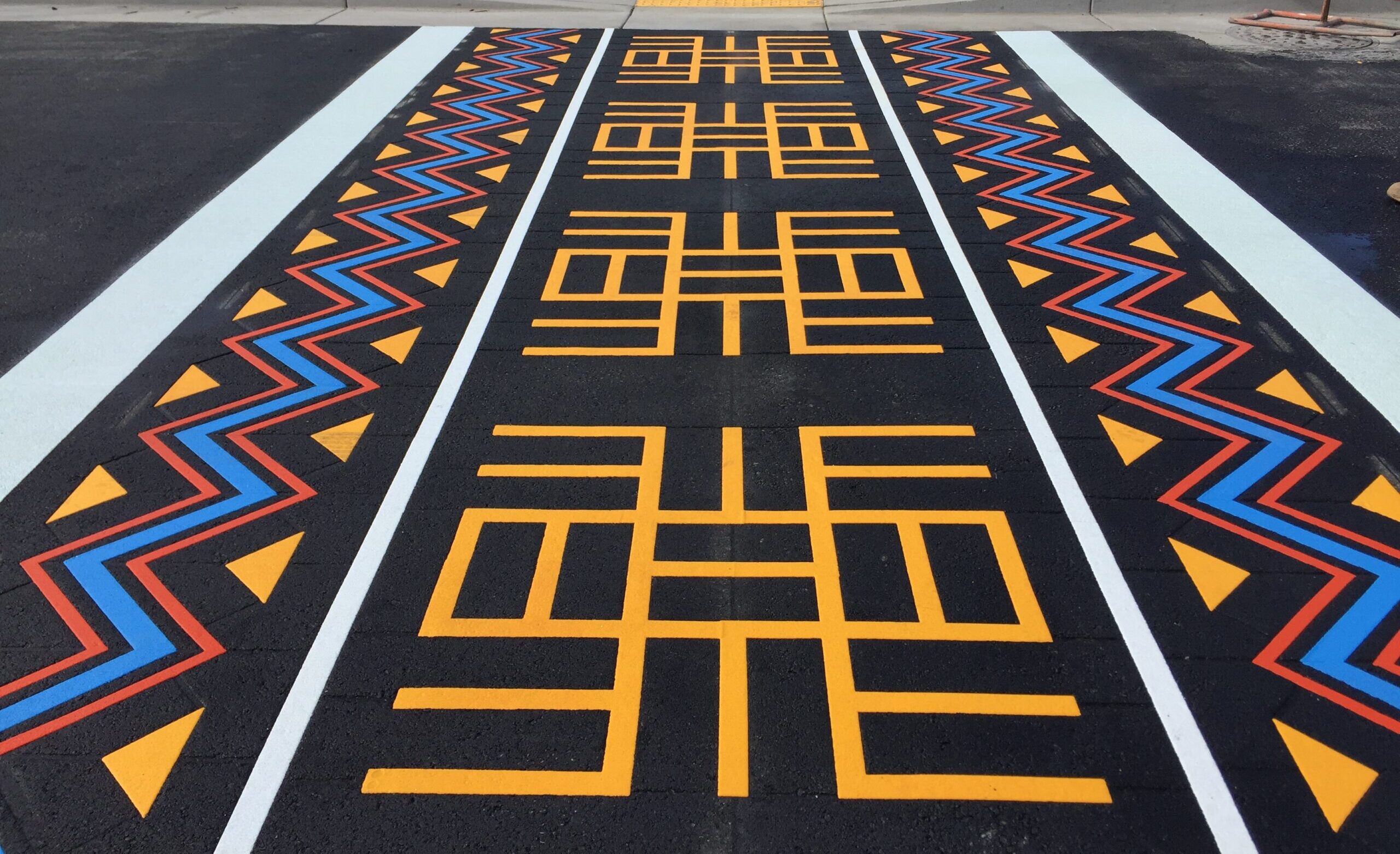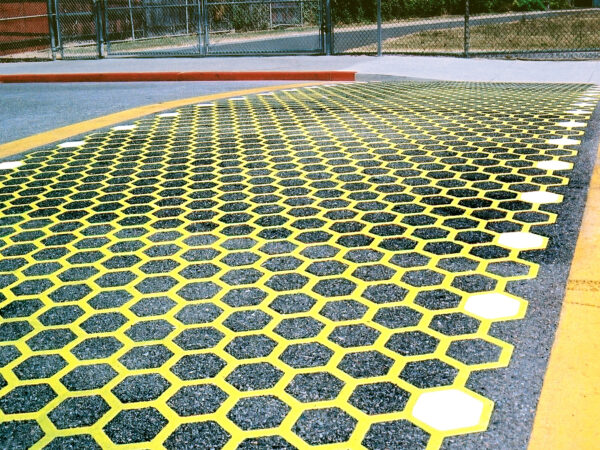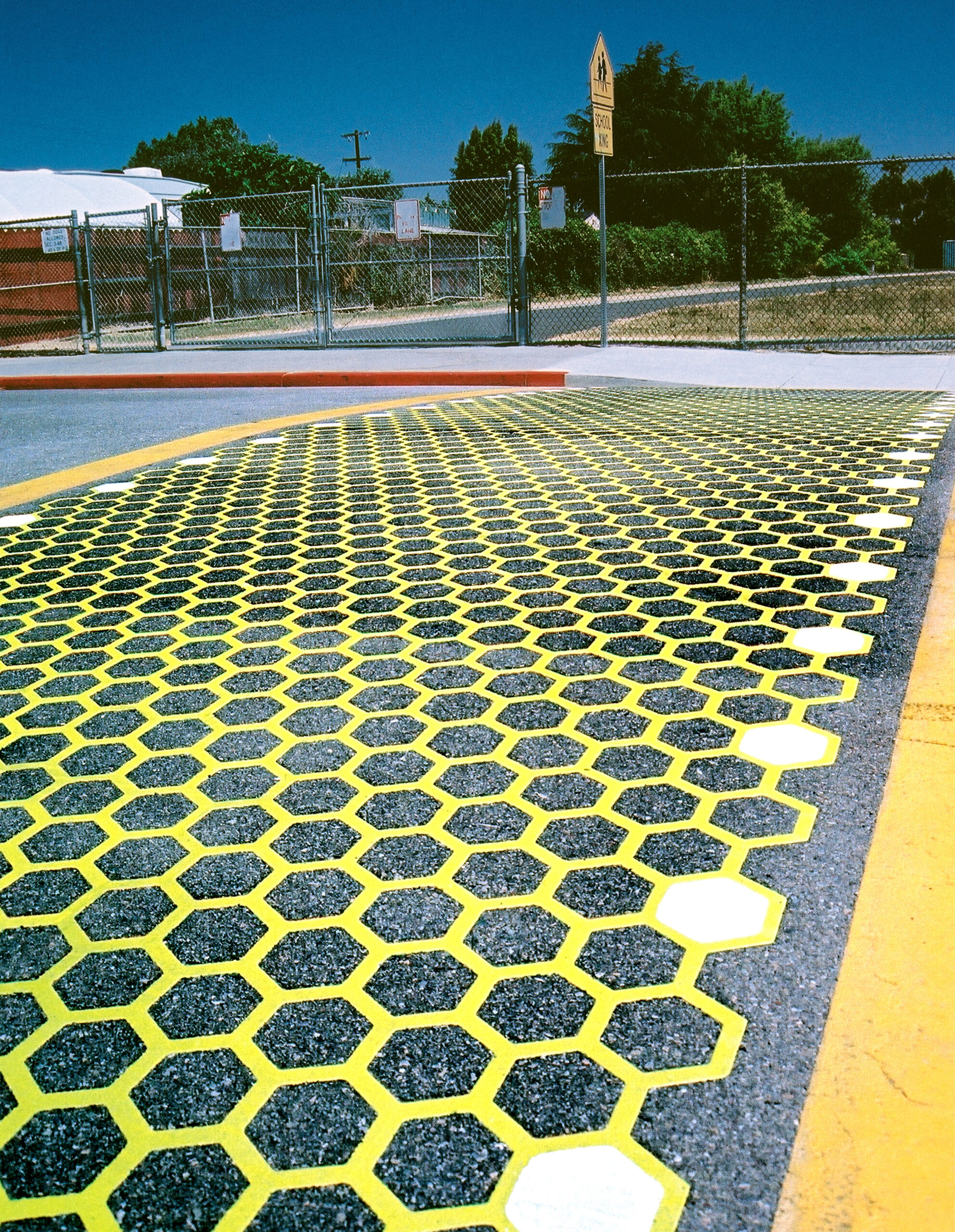 Complete Streets and enhanced safety is delivered using rugged, skid resistant aggregate reinforced thermoplastic pavement marking materials. Crosswalks, medians, islands and more, improve traffic safety with enhanced visibility for pedestrians, motorists and cyclists.